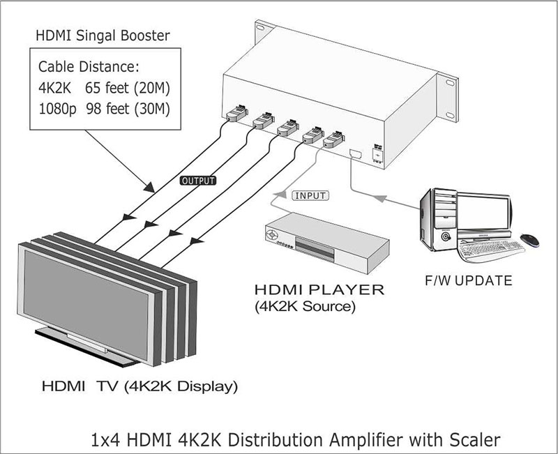 1x4 HDMI 4K2K Distribution Amplifier with Scaler