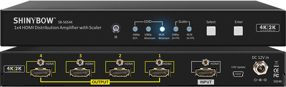 The SB-5654K is professional 1x4 4K2K HDMI Distribution Amplifier. Supporting one (1)