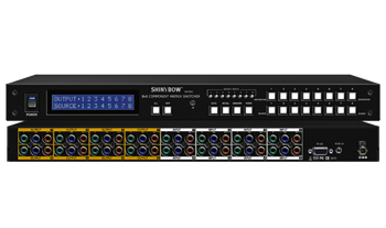 Congratulations on your purchase of one of the most innovative 8x8 Component Video (YPBPR) matrix product on the market Today. The SB-8802 is a true Matrix Routing Switcher for Component Video YPBPR signals. Support Higher Full HD resolution 480p, 720p and 1080i/p. It is a 8 individual Component Video inputs with 8 individual Component Video outputs. Because it is a matrix router, any input may be routed to any output; or the same input may be routed to all outputs or any combination. It completely eliminates the need to constantly move around video YPBPR input and output cables. The SB-8802 is useful for Matrix signals from Component Video YPBPR source devices (such as: VCRs, Camcorders, Video Game Consoles, Video CDs, DVDs, Satellite Receivers, CATV Set Top Boxes, etc.) To Component Video YPBPR destination devices (such as: LCD TV, HDTV, Plasma displays, Projectors, etc.). Selection of inputs is made via the Front Panel push buttons or an Infrared Remote Control unit or RS 232 control by computer.