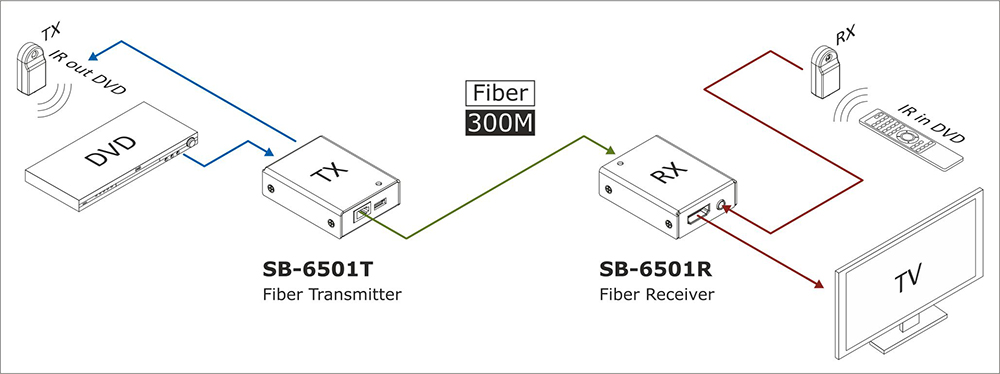 1. HDMI over Optical Fiber Extender 2. Extend HDMI up to 1000ft (300M) 3. Support video resolution up to 1920x1200 4. Available single-strand multimode LC fiber optic cable 5. Support EDID, HDCP and HDCP over DLI, no more EDID learning 6. Proven optical module reliability: TELCORDIA GR-468 7. Signal re-clocking, no TMDS extension to minimize skew 8. Secure data without RFI/EMI emission or loss of video quality 9. Complies with class 1M laser eye safety in compliance with FDA/CDRH and IEC 60825-1 10. Support IR signal to control source from Fiber receiver side -